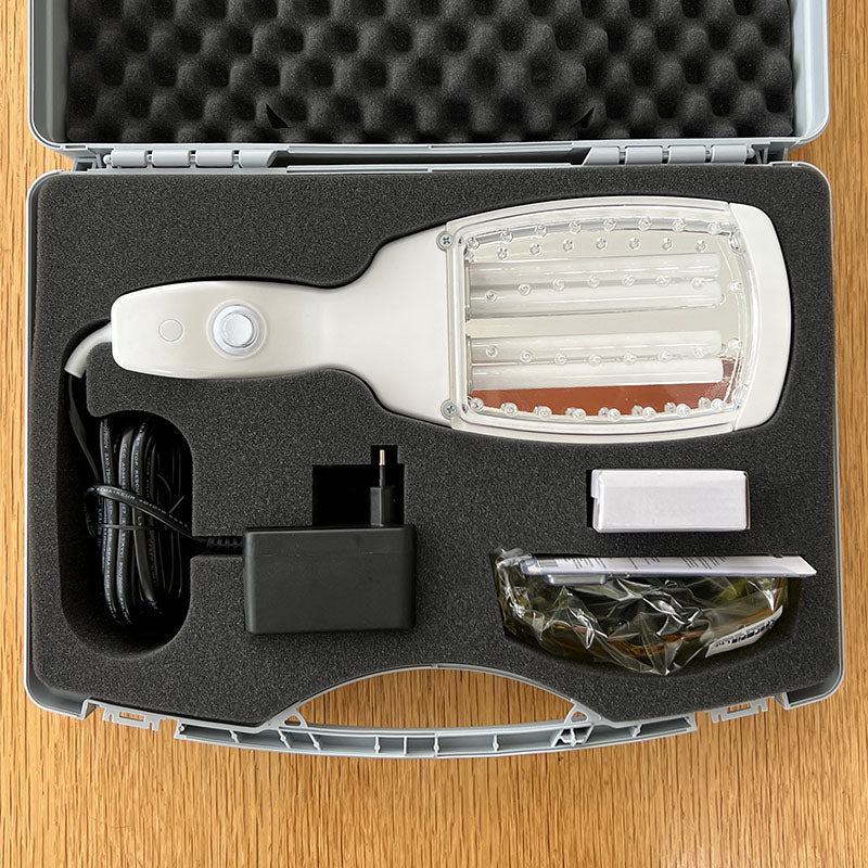 Die Dermfix 2000SX UVB-Handlampe ist ein einzigartiges UVB-Phototherapiegerät für zu Hause, das die Behandlung von Psoriasis, Vitiligo und atopischem Ekzem überall am Körper ermöglicht. Das Gerät ist standardmäßig mit speziell entwickelten Schmalband-UVB-Röhren mit einer Wellenlänge von 311 nm ausgestattet.
